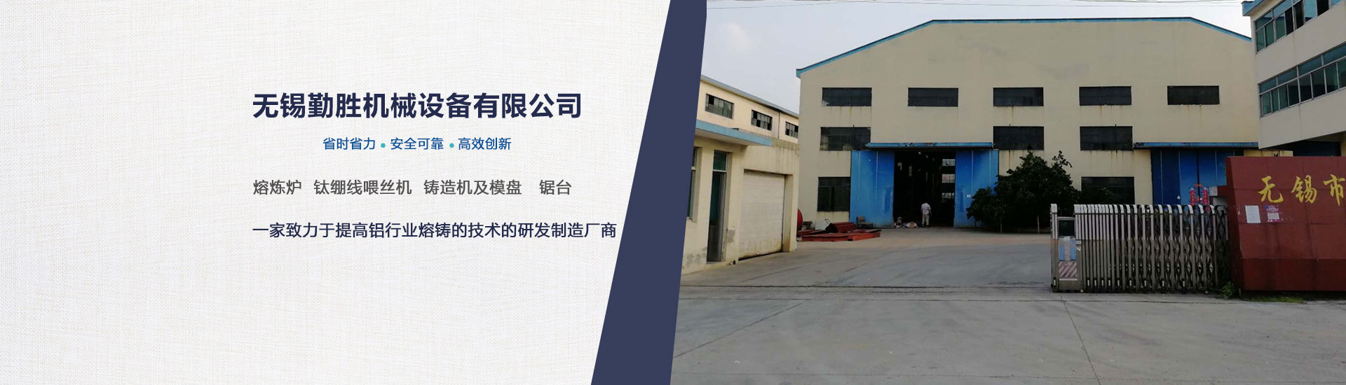 公司簡介 1.1.1 無錫勤勝機械設(shè)備有限公司的愿望是致力于提高鋁行業(yè)熔鑄的技術(shù)。 1.1.2 無錫勤勝機械設(shè)備有限公司密切跟蹤 的冶煉和鑄造技術(shù)的發(fā)展方向,學(xué)習(xí)創(chuàng)新,研 制開發(fā), 生產(chǎn)銷售鋁行業(yè)熔鑄用的各種相關(guān)設(shè)備和材料。 1.1.3 無錫勤勝機械設(shè)備有限公司以強大的專業(yè)設(shè)計人員和遍布全國的銷售網(wǎng)絡(luò),竭誠貢獻(xiàn) 的技